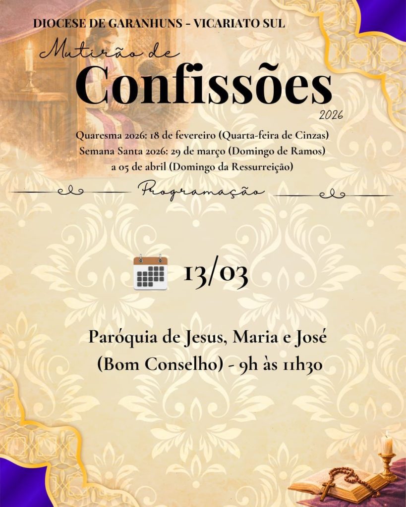 A Diocese de Garanhuns está realizando, durante o período da Quaresma, um mutirão de confissões nas paróquias que fazem parte do Vicariato Sul. A iniciativa reúne padres de várias cidades para atender os fiéis que desejam receber o sacramento da reconciliação neste tempo de preparação para a Páscoa.