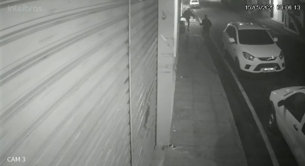 Dois indivíduos foram flagrados, na madrugada desta quinta-feira (15), chutando portas de estabelecimentos comerciais, quebrando câmeras de segurança e promovendo arruaça na Rua José Amaral, em Bom Conselho.