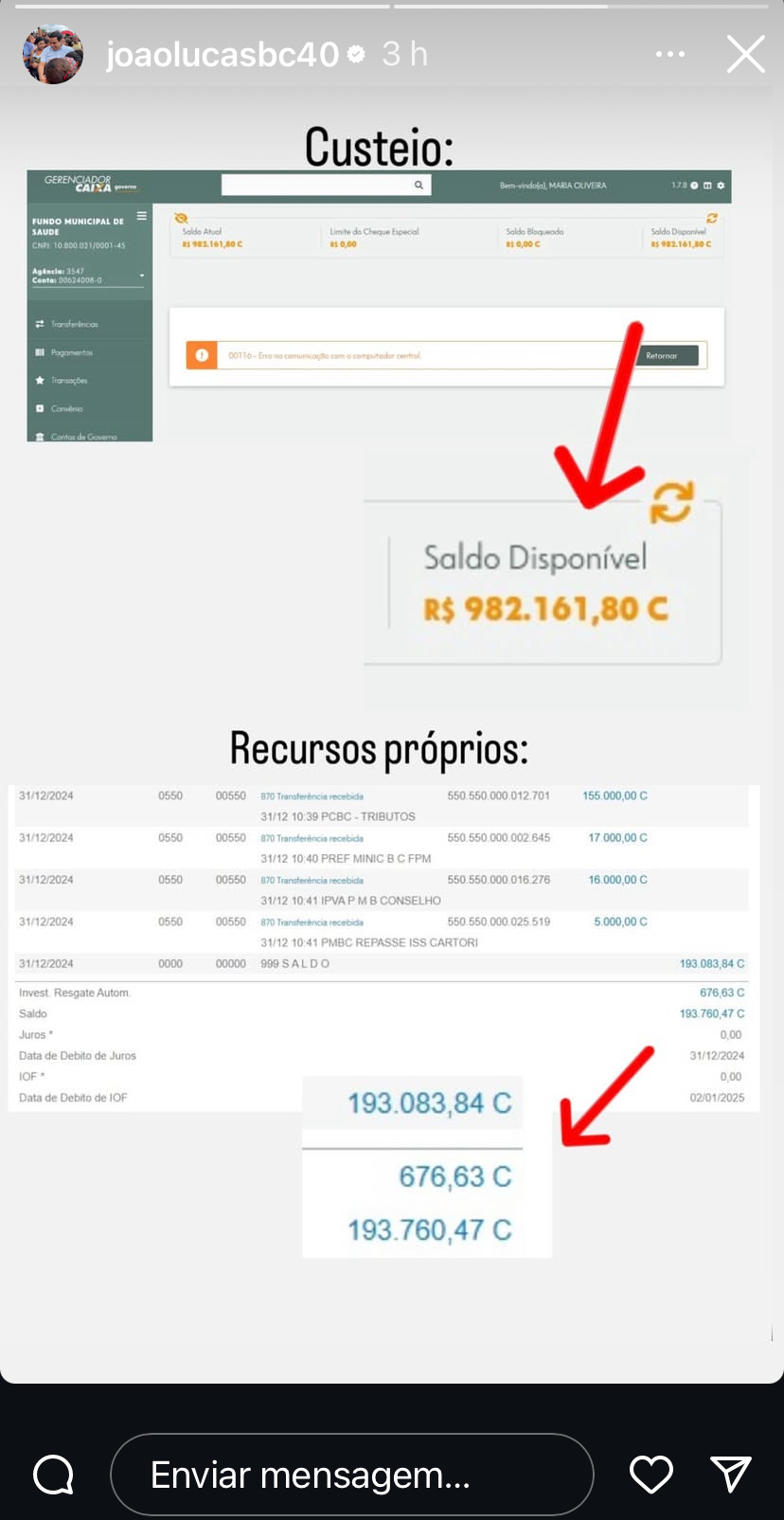 Na tarde desta terça-feira (31), o prefeito de Bom Conselho, João Lucas, utilizou suas redes sociais para esclarecer a situação envolvendo o atraso no pagamento da folha dos servidores da saúde. Mesmo com os recursos disponíveis em conta, o gestor informou que questões burocráticas impediram a conclusão do processo.