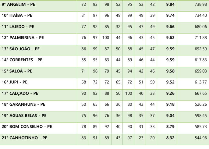 Em relação aos 21 Municípios abrangidos pela 5ª Gerência Regional de Saúde (V GERES), Bom Conselho figura na 20ª colocação.